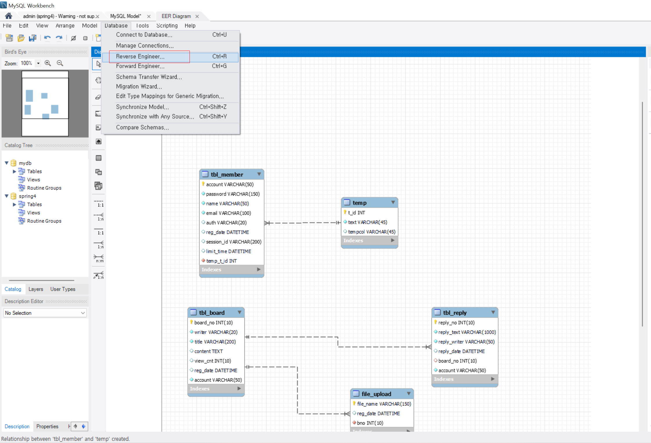 마스터 사용자 이름은 관리자 계정명이 되니까 까먹지 않도록 주의 생성 후 파라미터 편집으로 들어가서 변경된 db 선택 후 계속으로 다음다음 넘어가다가 즉시적용 누르면 선택 후 next 디비는 2군데에서만 접속 되어야 한다. e2c와 localhost Workbench 설정 완료 되었으면 테이블을 생성해 준다. CREATE TABLE tbl_board ( board_no INT(10) AUTO_INCREMENT, writer VARCHAR(20) NOT NULL, title VARCHAR(200) NOT NULL, content TEXT, view_cnt INT(10) DEFAULT 0, reg_date DATETIME DEFAULT current_timestamp, CONSTRAINT pk_tbl_boa..
