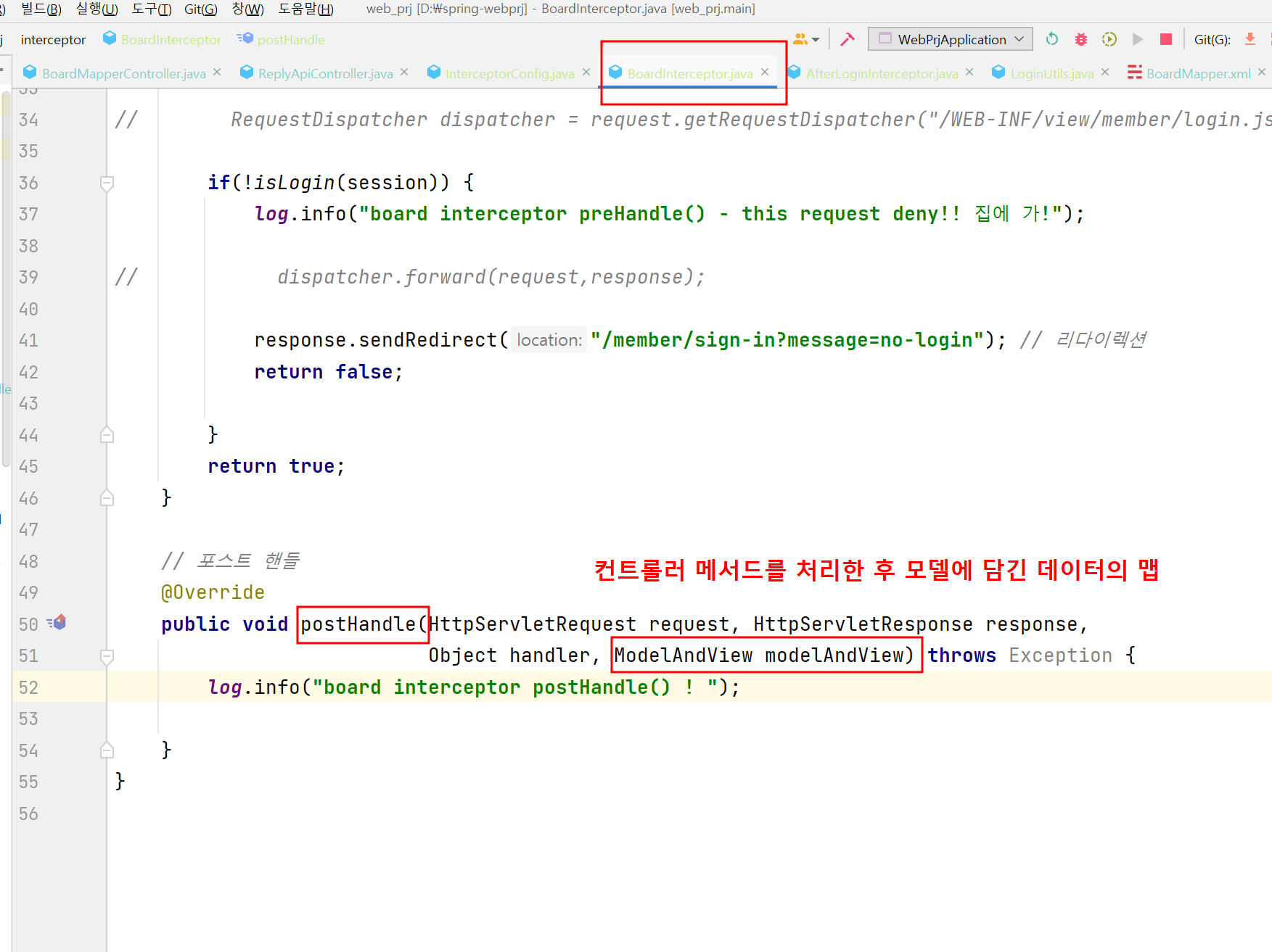 jsp에서 로그인한 회원에게만 버튼을 보여준다고 해서 문제가 해결되지 않는다. url로 접속할때도 수정이나 삭제를 하지 못하도록 막아야 한다. ================ delete 다시 만들어야 함. delete는 보지 마세여!! modify는 get 요청이기 때문에 수정화면에 진입하는 것을 포스트 핸들에서 거른 것인데. delete는 get과 post 구분이 없어서 프리핸들만 통과하면 삭제가 되게 된다. delete 요청을 get 으로 보내면 검증을 수행한 후 post 요청을 보내는 방식으로 수정을 해야 한다. 지금은 url로 delete 접근시 게시물이 삭제 된다. http://localhost:8183/board/delete?boardNo=2 이런식으루.. ================ del..